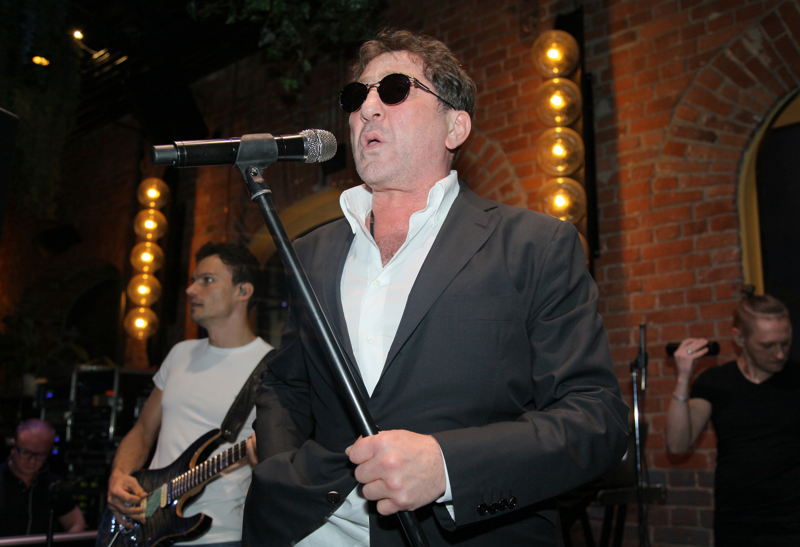 Певцу Григорию Лепсу подарили коньяк во время выступления в концертном зале «Фестивальный» в Сочи. Он передал алкогольный напиток своему гитаристу.