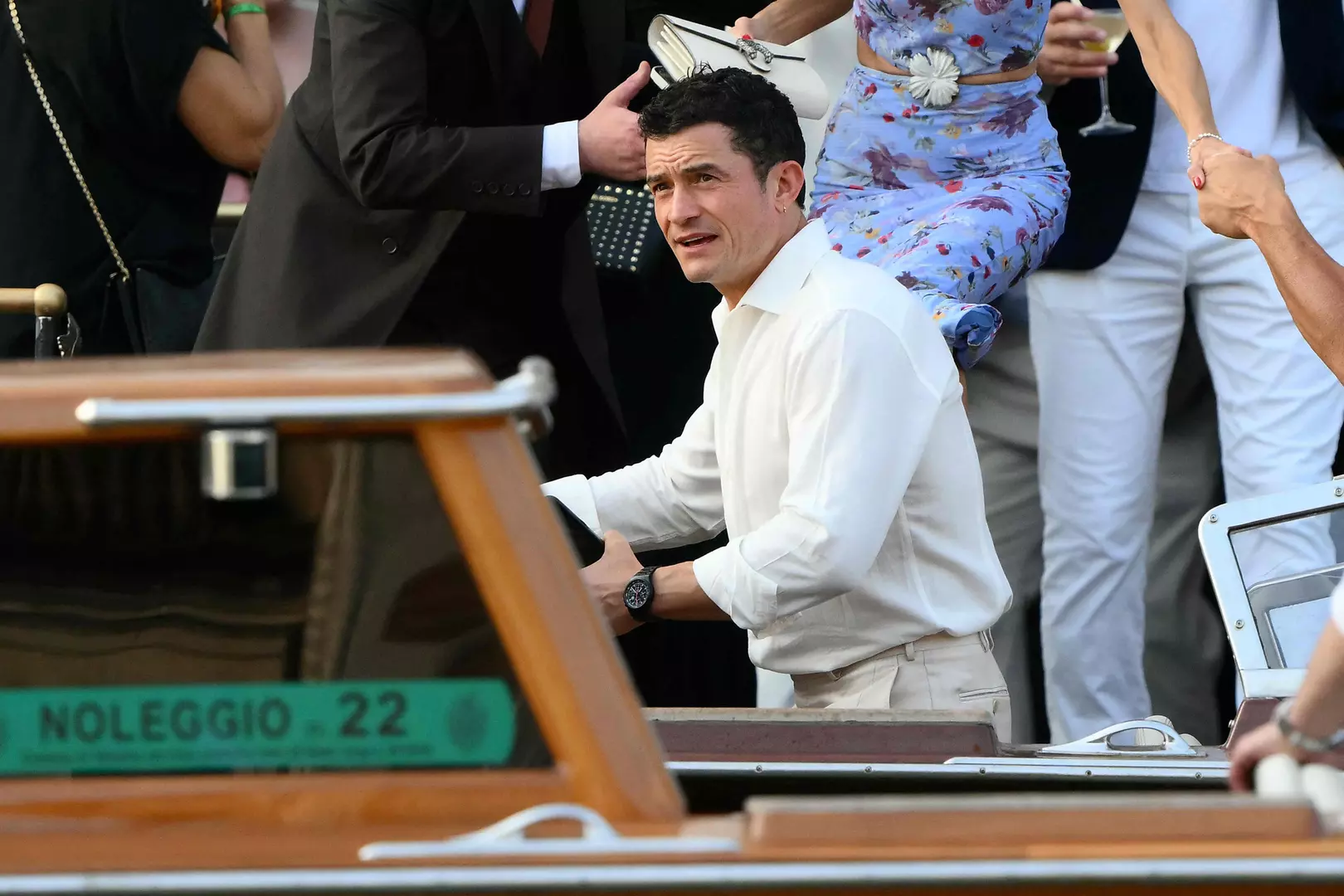 Орландо Блума застали на свадьбе Джеффа Безоса и Лорен Санчес в компании стилистки его бывшей девушки Кэти Пери. Об этом сообщает The Sun.